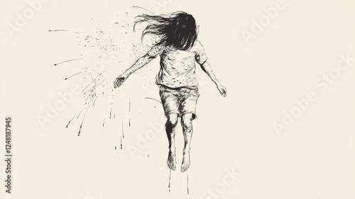 Floating Girl in Mid-Air, Abstract Background, Art Style, Potential for Inspirational or Conceptual Use