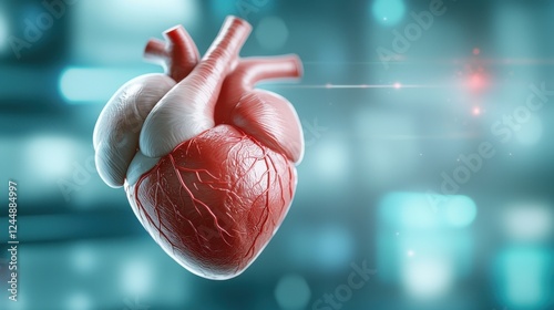 Floating Human Heart in Surreal Sci Fi Background A digital depicting a human heart organ suspended in a futuristic technology inspired environment with abstract shapes colors and textures
