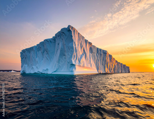 ice, ocean, sea, sunset, iceberg, arctic, floating, climate, water, melting, nature, evening, sky, landscape, environment, global warming, drift, horizon, cold, polar, seascape, block, scenery, twilight, serene, peaceful, tranquil, chill, freeze, temperature, blue, orange, scenic, seasonal, coastal, glacé, contrast, glow, climate change, ocean view