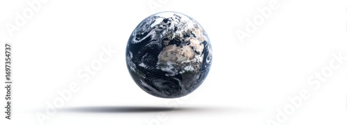 earth, planet, earth, globe, sphere, continent, ocean, sea, sky, cloud, space, isolated, white, background, shadow, floating, round, blue, land, geography, global, environment, climate, ecology, map, europa, africa, asia, realistic, view, digital, graphic, resource, illustration, three-dimensional, render, nature, water, day, travel, exploration, conservation, science, physics, universe, cosmos, astronomic, celestial, planetary