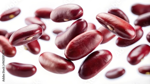 Floating Red Kidney Beans on White Background