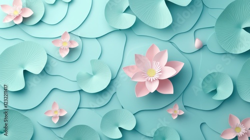 springtime, floating, lily, pad, peaceful, duck pond, soft, pastel, minimalist, high-coloured, colours, random, symmetric, three-dimensional, illustration, synergy, vector, shape, nature, calm, aquatic, tranquil, bright, minimalism, design, digital, horticulture, hush, watery, crisp, concept, scenic, gentle, blossoming, relaxing