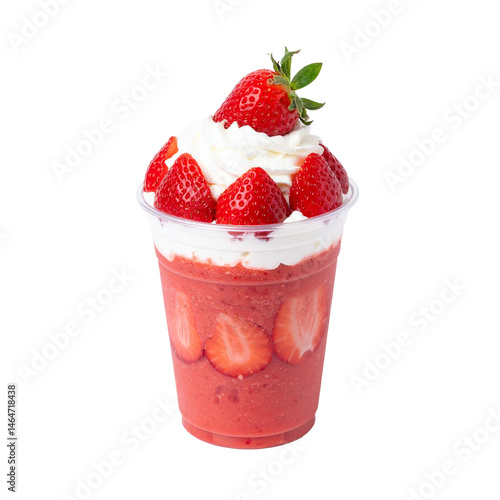 Floating strawberry cake with whipped cream and fresh berries, PNG