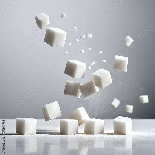 sugar, cube, white, sweet, floating, levitation, falling, motion, food, dessert, confectionery, ingredient, kitchen, cooking, baking, candy, diabetes, health, diet, unhealthy, delicious, tasty, lump sugar, closeup, macro, food photography, clean, minimal
