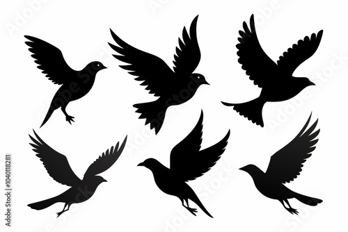 bird, air, animal, silhouette, vector, set, flying, black, design, dove, drawing, fauna, mammal, feather, flight, fly, freedom, graphic, illustration, isolated, shape, sky, wild, wildlife, wing, tattoo, nature, icon
