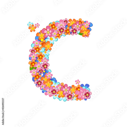 floral alphabet with colorful tiny flowers. joyful capital lette