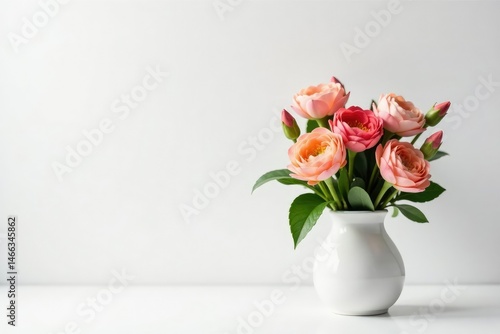 Floral arrangement in a simple vase on a white background, garden, delicate, blossom