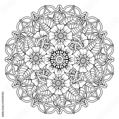 Floral Background with mehndi flower. Decorative ornament in ethnic oriental style, doodle ornament, outline hand draw. Coloring book page.
