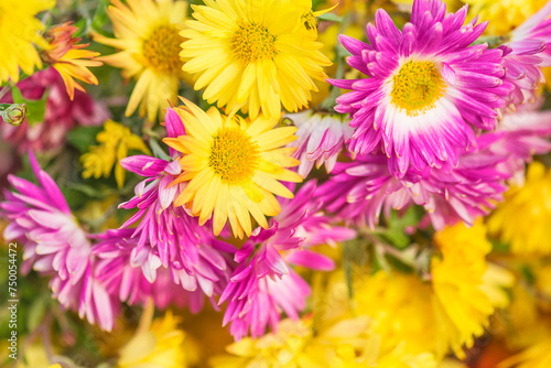 floral, background, flower, flora, yellow, purple, pink, season, decoration, arrangement, sunlight, sunny, bouquet, bouquet, chrysanthemum, thanksgiving, holiday, celebration, event, daisy, flower, nature, plant, beauty, bloom, summer, flower petals, aster, chrysanthemum, autumn, beautiful, garden