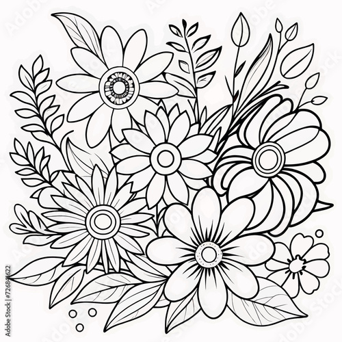 floral, colouring, page, floral pattern, flower, drawing, illustration, book, adult, flower, doodle, white, outline, decoration, colouring, abstract, leaf, line, nature, pattern, background, art, black, children, design, graphic, line art