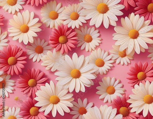 floral, daisy, seamless, pattern, pink, background, cosy, serene, tranquil, calm, artistic, organic, whimsical, beauty, modern, graceful, delicate, romantic