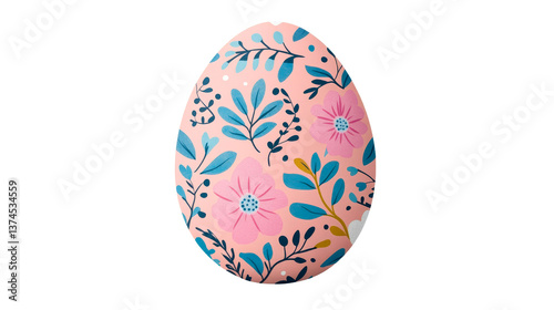 Floral decorated pink Easter egg design, ornate blossoms, cut out transparent