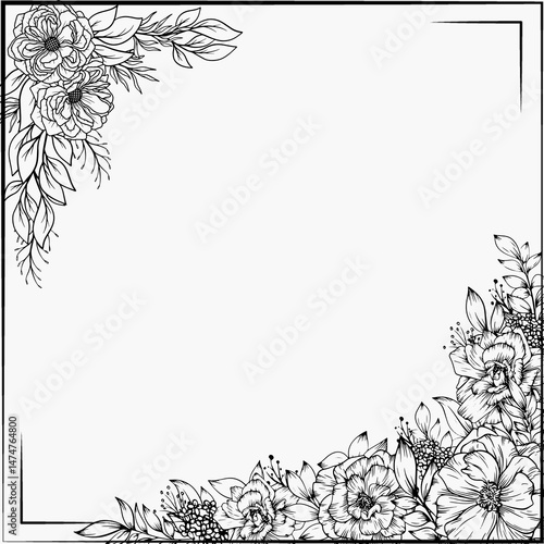 frame, flower, floral, design, vector, leaf, pattern, illustration, vintage, ornament, border, art, nature, decoration, element, plant, black, flower, card, wallpaper, drawing, ornate, tree branch, retro, decor
