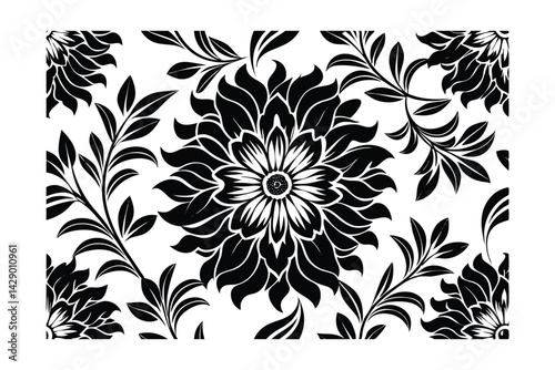 flower, pattern, floral, vector, seamless, leaf, decoration, ornament, design, art, wallpaper, illustration, plant, vintage, element, nature, decor, black, silhouette, ornate, tree branch, retro, tattoo, beauty, damask