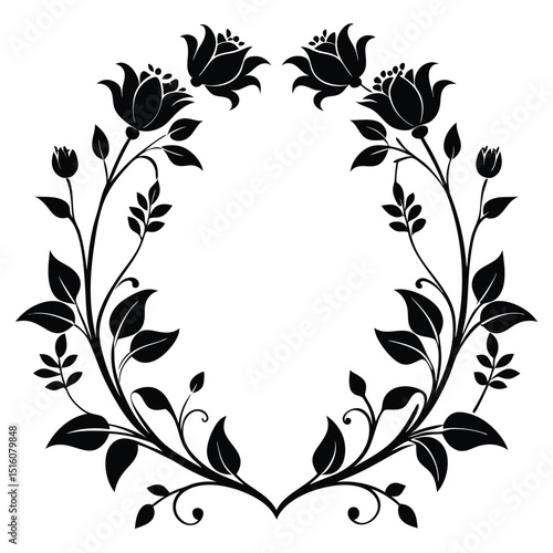 floral, frame, rose, leaf, black, white, art, vector, design, element, decoration, ornament, graphic, pattern, border, nature, plant, drawing, illustration, vintage, elegant, decorative, style, artwork, background, symbol, shape, curve, silhouette, stem, blossom, bud, tree branch, motif, template, card, invitation, wedding, scrapbook, outline, artistic, classic, retro, swirl, scroll, flourish, monochrome, botanical