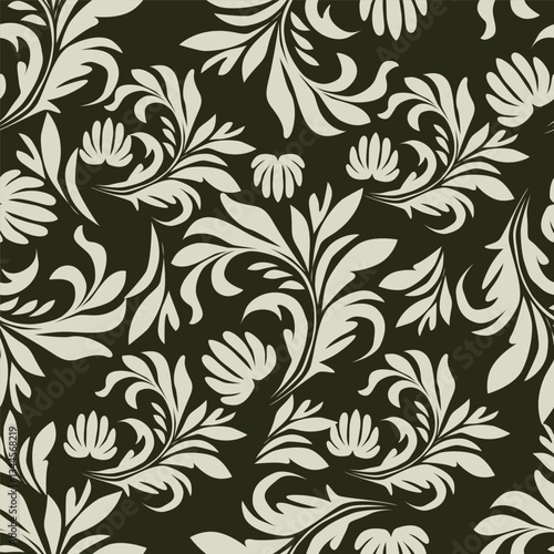 pattern, seamless, floral, wallpaper, flower, vector, ornament, leaf, design, illustration, decoration, vintage, art, texture, damask, nature, decor, textile, ornate, plant, retro, swirl, element, classic, tile
