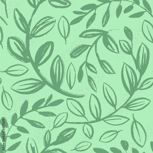 Floral seamless pattern. Leaves hand drawn brush stroke. Vector doodle, sketch