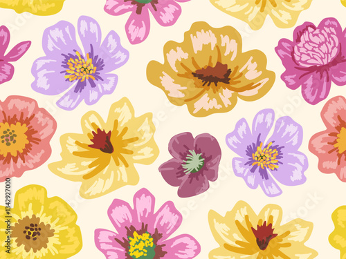 Floral seamless pattern of colorful flowers and leaves, floral and plants wallpaper background for your design , wrapping paper, fabric