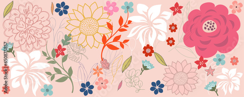 flower, pattern, floral, seamless, vector, wallpaper, flower, illustration, design, decoration, art, pink, texture, nature, vintage, spring, leaf, ornament, summer, butterfly, card, blossom, drawing, textile