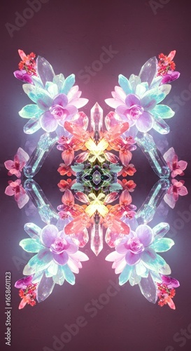 symmetric, floral, vibrant, colourful, art, design, pattern, light, crystal, abstract, flower, mirror, glowing, bright, pastel, geometric, many-coloured, pink, purple, blue, orange, red, green, yellow, background, dark, texture, image, patterned, composition, creative, visual, symmetry, glow, modern, artistic, photo, colours, unique, beautiful, intricate, kaleidoscope, gem, gemstone