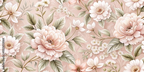 Floral Tapestry with Delicate Blooms and Lush Foliage, seamless pattern, flower wallpaper, botanical art, floral design, flower background ,flower wallpaper