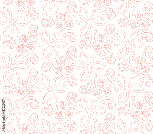 pattern, vector, background, oriental, floral, seamless, victorian, arabesque, luxury, abstract, royals, wallpaper, organic, unusual, wrapping, leaf, leaf, carpet, orient, line, repeated, curve, tile, flower, classic, beautiful, tiled, decor, drawing, fashion, fabric, illustration, decorative, retro, texture, style, renaissance, design, mosaic, vintage, decoration, editable, colours, coloured, monochrome, light, red, white, pink