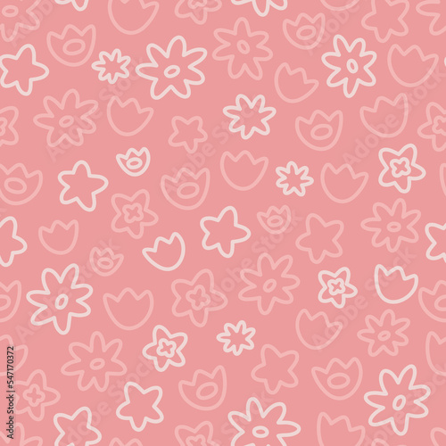 Floral vector repeat pattern with cute and simple light pink elements on pink background