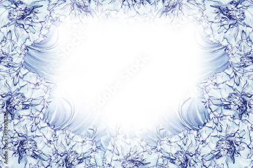 Floral white-blue-turquoise beautiful background. Flower composition. Frame of white-blue flowers carnations white background. Nature.
