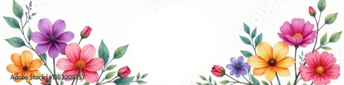 Floral wreath made of colorful watercolor flowers around a circle, watercolor style, floral wreath