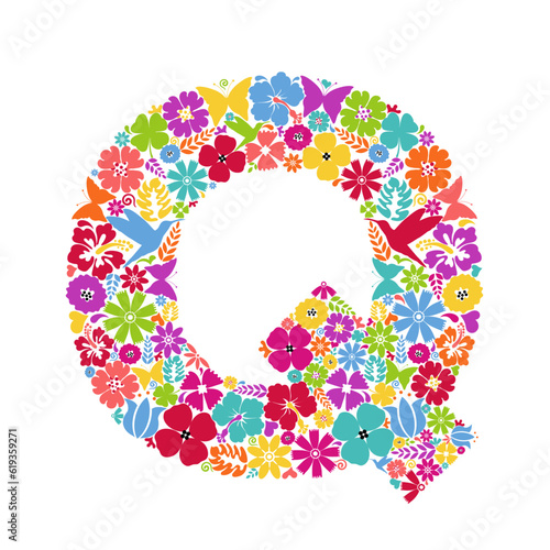 Flower alphabet. Flower symbols forming letter Q. Floral ornament in the form of a letter.