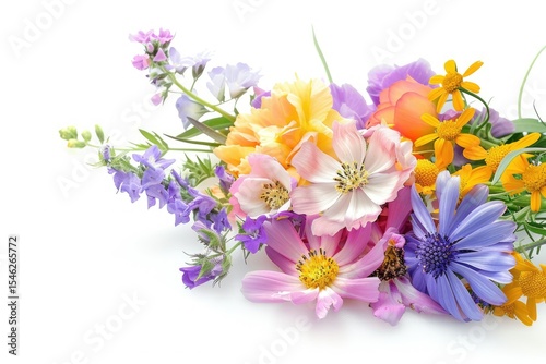 Flower Arrangement or Bouquet Colorful Spring Flowers Isolated on White Background White