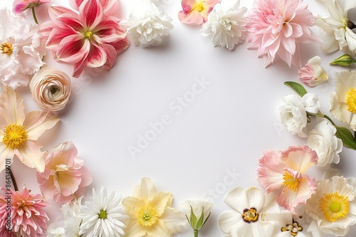 Flower border with blank center, delicate petals in various colors, ideal for invitations