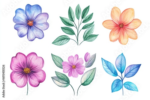 Flower crayon watercolor spring floral set Hand drawn pastel crayon flower