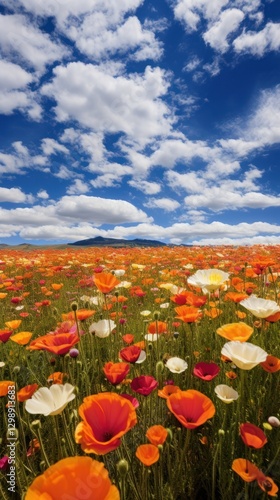 flower, field, landscape, cloud, plant, sky, background, scenery, nature, poppy, wildflower, grass, blue, wallpaper, outdoors, horizon, summer, daisy, photo, land, sunlight, blossom, botany, growth, meadow, image, freshness, fragility, vibrant color, flower head, springtime, flowerbed, anemone, prairie, aster, plain, day, inflorescence, background, calmness, asteraceae