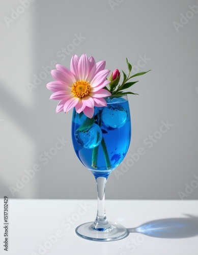 flower, bloom, blossom, glasses, drink, blue, minimalistic, simple, elegant, aesthetic, tranquil, serene, calm, peaceful, artistic, stylish, contemporary, modern, beauty, plant, nature, fresh, vibrant, crystal, clear, refreshing, beautiful, exquisite, delicate