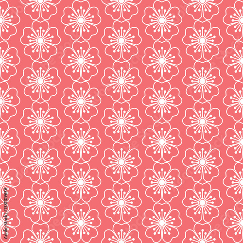 Flower Japanese style pattern background vector art. Pastel pink and white. For wrapping paper, closet, wallpaper, fabric patterns, tropical, and oriental