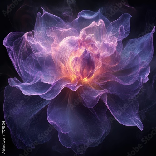 Flowers . They are encased in a glowing shell of purple smoke as if covered translucent .