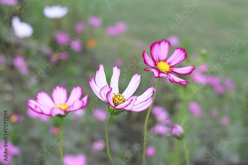 flower, nature, pink, spring, garden, flower, plant, blossom, summer, green, bloom, purple, cosmos, flora, beauty, floral, blooming, closeup, field, season, natural, bright, meadow, colourful