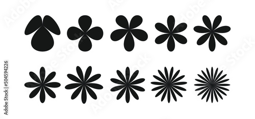 Flowers silhouettes vector. Set of flowers with different numbers of petals. Flowers icons set