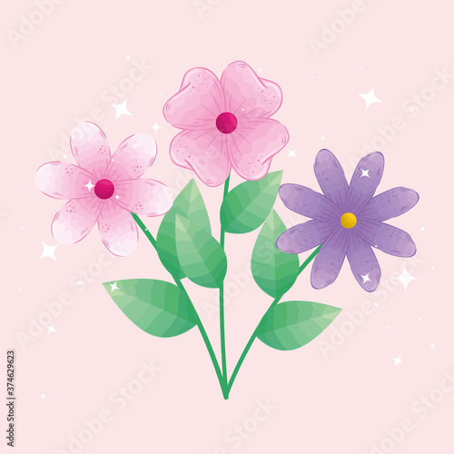flowers with leaves design, natural floral nature plant ornament garden decoration and botany theme Vector illustration