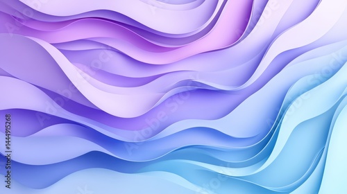 Flowing Abstract Waves, 3D Layered Paper in Cool Tones and Soft Gradients, Background Texture