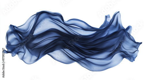 Flowing fabric in deep blue tones creates sense of movement and elegance, showcasing beauty of texture and light. This digital art piece captivates with its fluidity and grace
