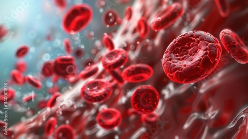 Flowing red blood cells navigate through an artery, illustrating a detailed medical big data analysis of the human circulatory system and its vital functions