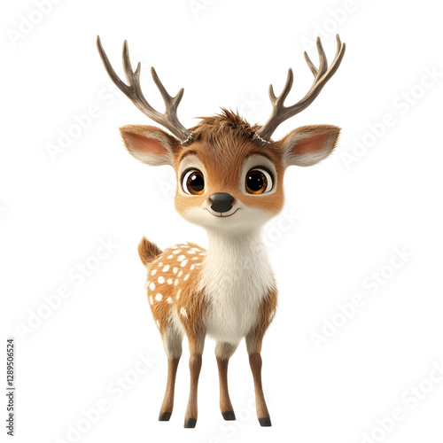 Fluffy 3D Cartoon Deer with Soft Antlers and Glowing Isolated on Transparent Background