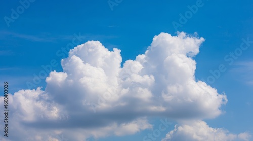 Fluffy cumulus cloud against a clear blue sky, creating a serene summer atmosphere.