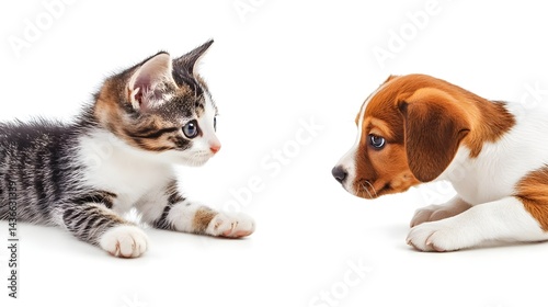 kitten, puppy, fluffy, pet, animal, play, together, cute, adorable, isolated, companion, friends, furry, domestic, youth, tranquil, happy, fun, innocence, love, joy, nature, care, bond, calm, peaceful, small, expression, playful, stare, discovery, interaction, lively, character, behaviour, companionship, charming, indoor, friendship, soft, family