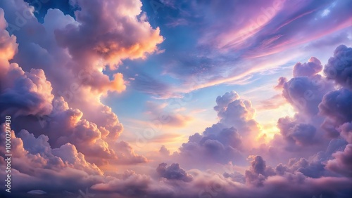 Fluffy Purple and Pink Clouds in the Skyline: Majestic Cloud Formations and Scenic Sky Views for Atmospheric Visuals for Poster and Digital Design Projects