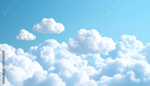 Fluffy White Clouds Drifting Through a Clear Blue Sky