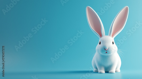 rabbit, white, animal, mammal, fluffy, cute, easter, rabbit, spring, holiday, celebration, decoration, pastel, blue, background, three-dimensional, render, digital, art, illustration, design, soft, gentle, light, ear, pink, isolated, studio, shot, vertical, copy, space, sweet, adorable, furry, domestic, domesticated, decorative, concept, artistic, seasonal, greeting, card
