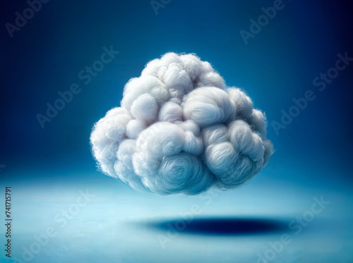 Fluffy White Storm Cloud Floating Against a Blue Studio Background – Digital Illustration